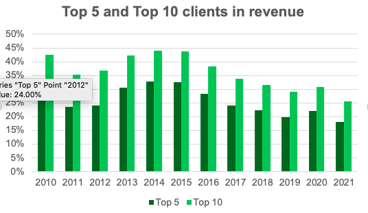 EPAM has been rapidly growing its customer base and increasing diversification.